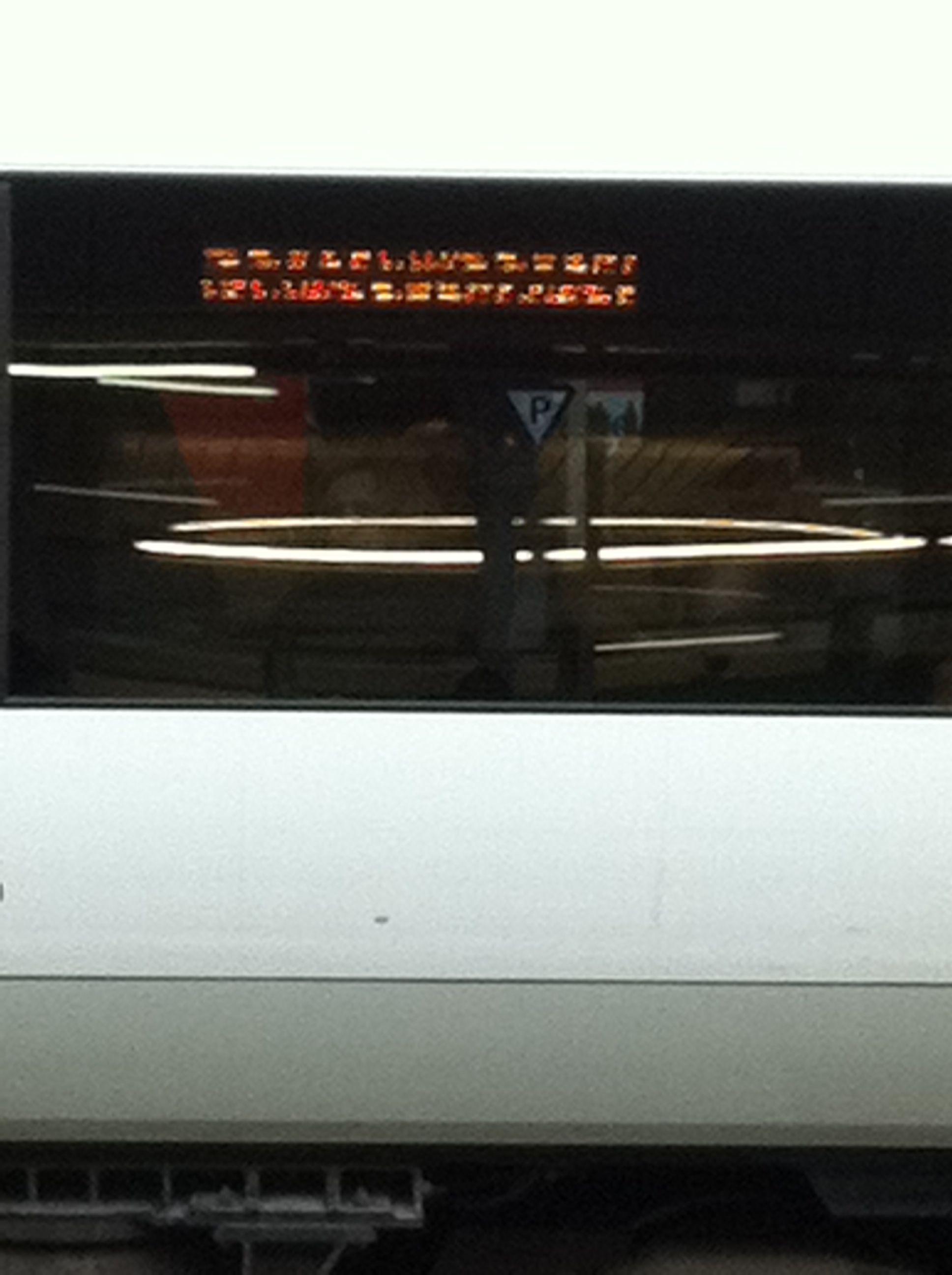 28Nov0 comments on “This is a train” This is a train Posted by ashleyelsdonon November 28, 2010July 22, 2020in PhotographsLeave a comment I’m quite pleased with this picture. The LED display on the train had failed in a really interesting way, so I took a picture of it.