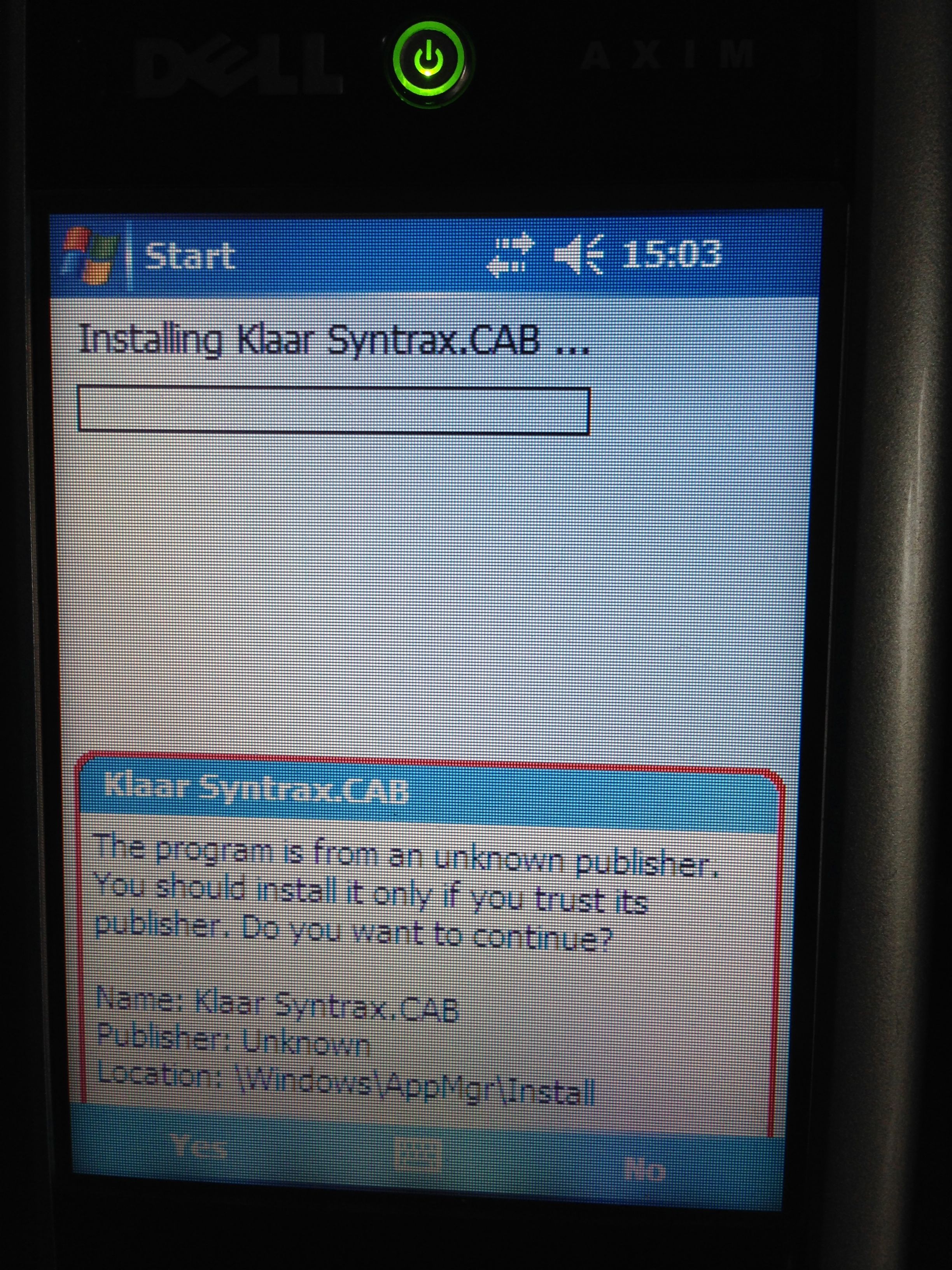 Dell Axim Syntrax installation Windows Mobile