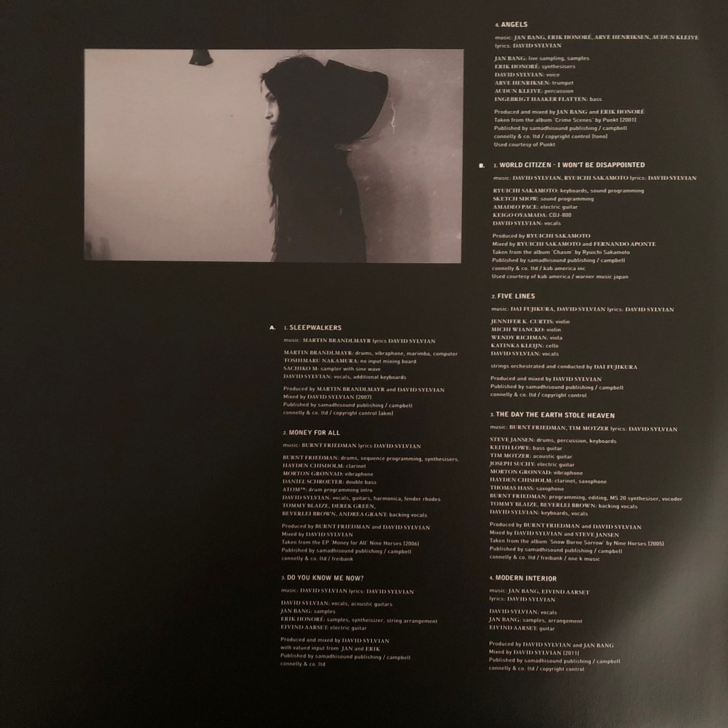So what did I think? Well it certainly isn’t the best thing by Mr Sylvian that I’ve heard. Calling it music might even be a stretch. I think it is more appropriate to say it is sound art. Treated as such I’m assuming that it may have been more interesting to watch it live than to hear it as a recording.